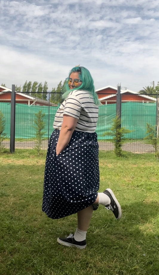 Falda Basic Midi lino azul marino lunares