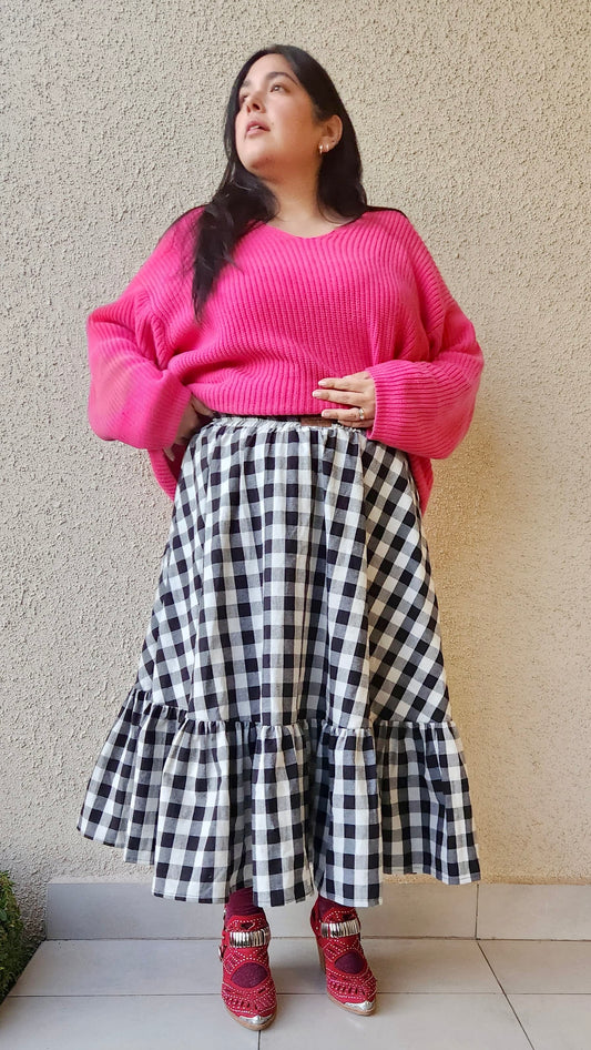 Falda Maya Midi Vichy rojo