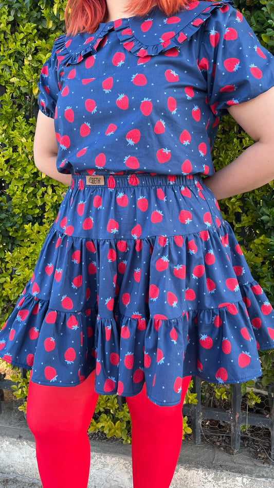 Mini falda Cassie azul frutillas [Edición Limitada]