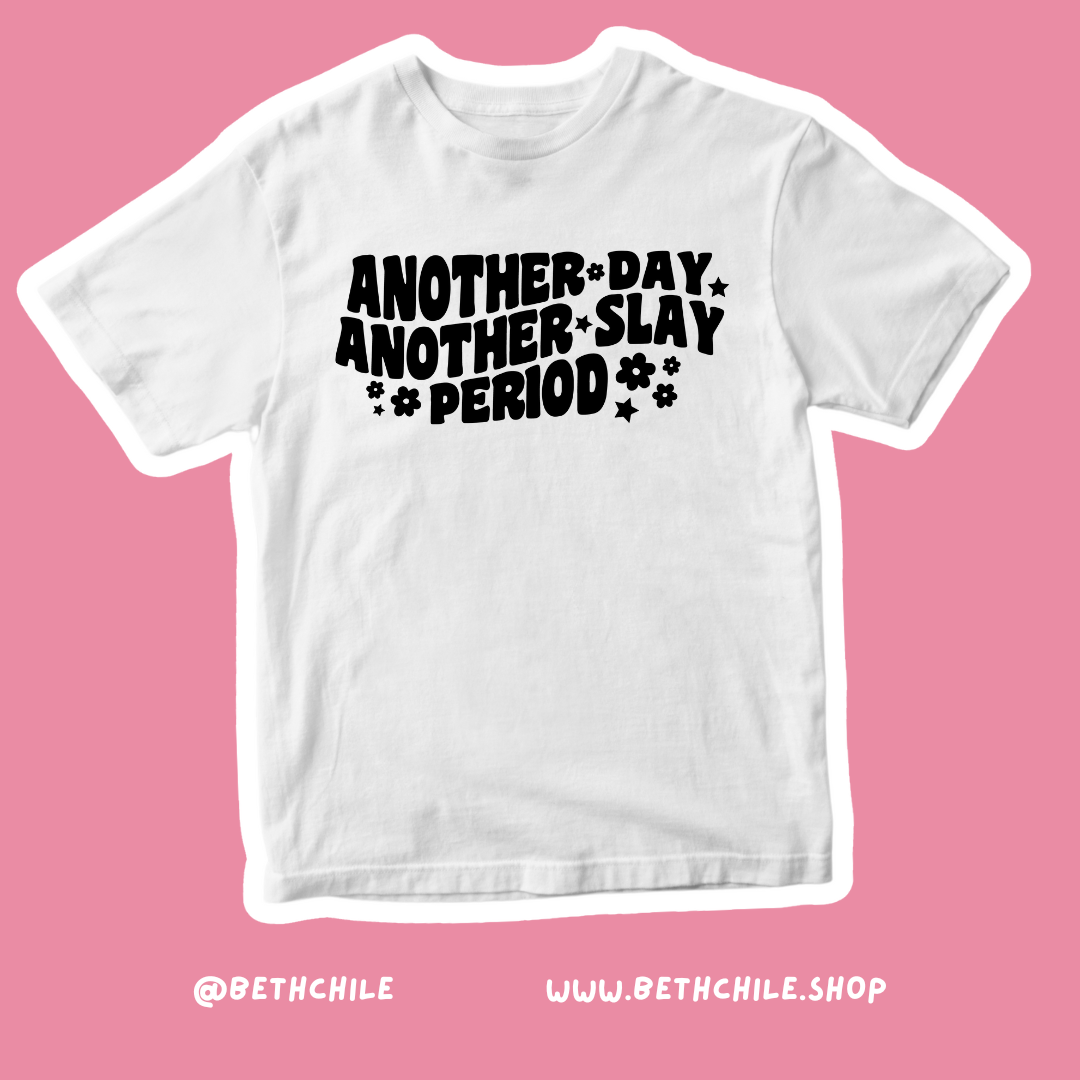 Another day, another slay ✨period✨ blanco con negro
