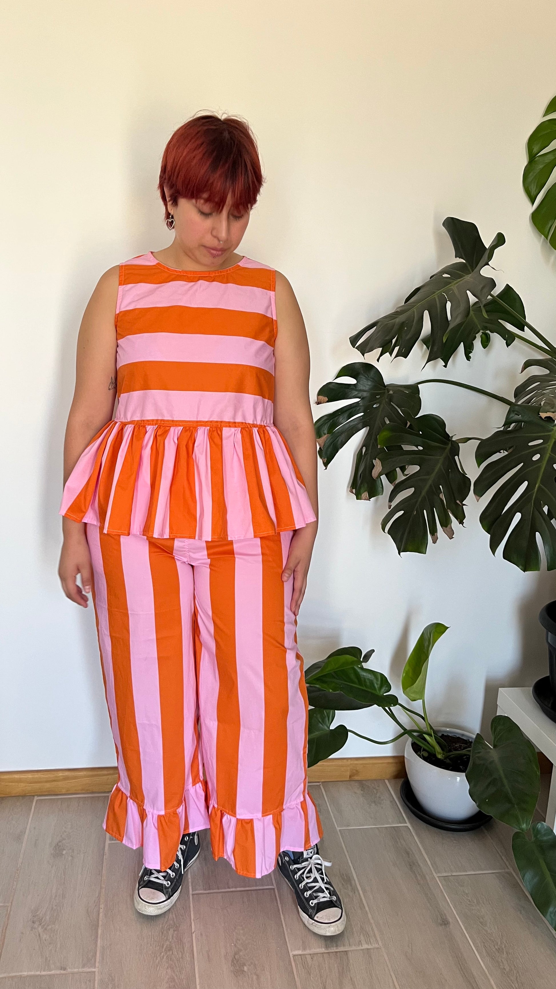 Blusa Milly líneas mix Naranjo y rosa
