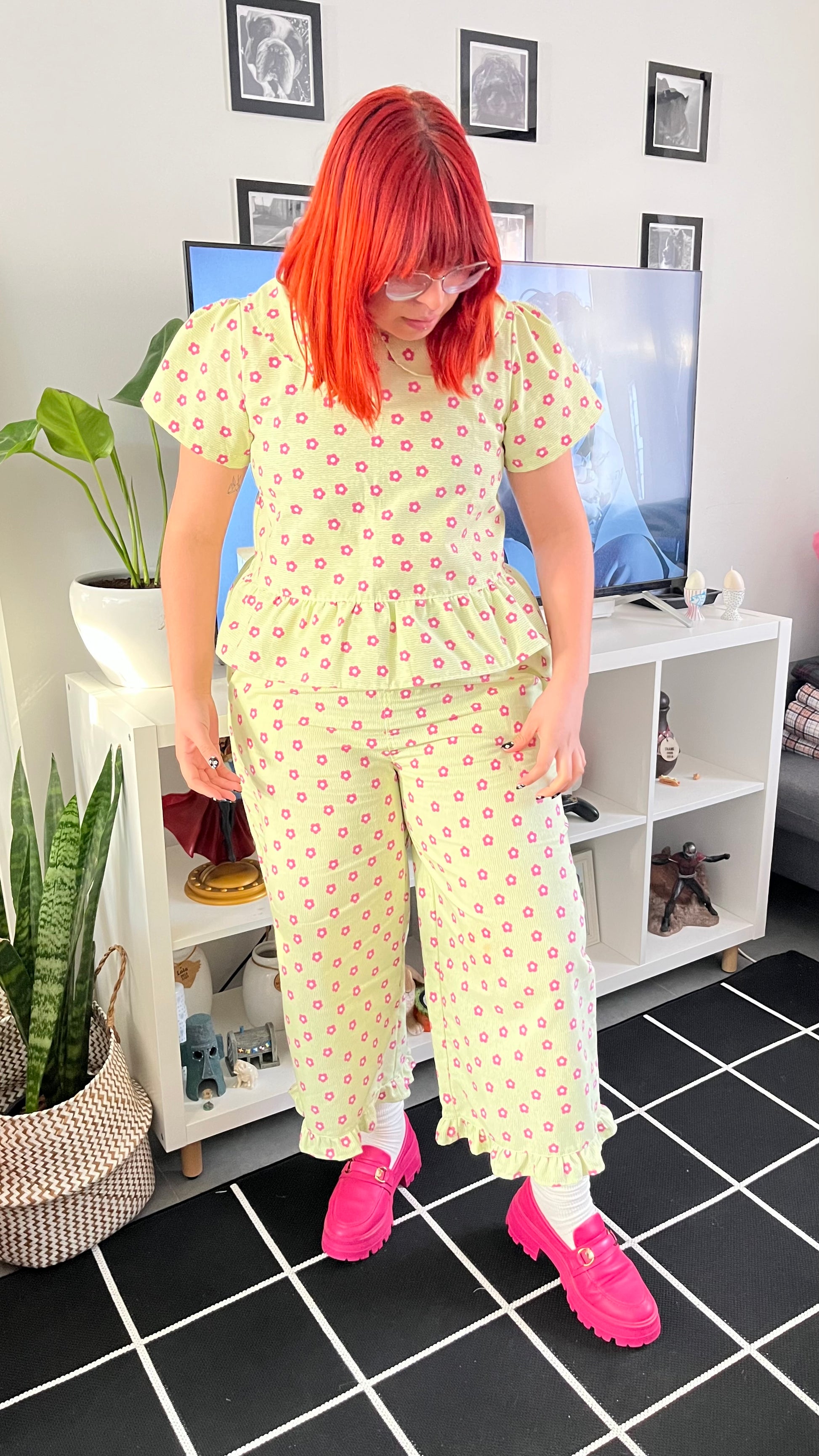 Culotte Lillie ondas verde flores fucsia