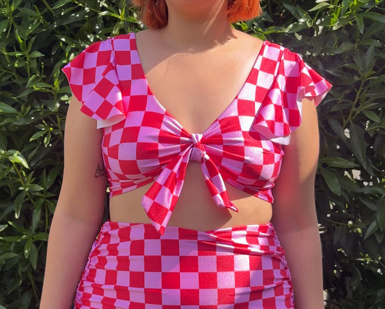 Este top es tan versátil y cómodo que puedes usarlo como quieras: bañador, de vestir, deportivo, etc. Es la misma base del top knot, pero con unas bellas mangas cortas circulares, tipo volados, que cubren parte del brazo y la zona del rollito de la axila. Tiene muy buen calce en todos los tamaños de copas debido a las pinzas laterales, lo que favorece mucho a bustos grandes. Confeccionado en lycra dupont y forrado con lycra dupont: es doble tela. La amarra del escote es un accesorio totalmente desmontable. Puedes usarlo sin amarra para lucir un escote redondo o convertirlo en escote en V con lazo en el centro.